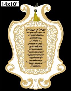 ACRYLIC LASER CUT ILLUSION DECORATIVE ORNATE FILIGREE HEBREW OR ENGLISH WOMAN OF VALOR “ESHET CHAYIL” BLESSING – PICTURE WALL PLAQUE DECOR WHITE ACRYLIC WITH GOLD STAMPING