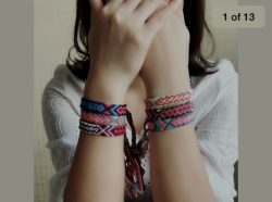 5 Bohemian yarn woven embroidery ethnic friendship bracelets/anklets (waxed, multi-color, waterproof).
