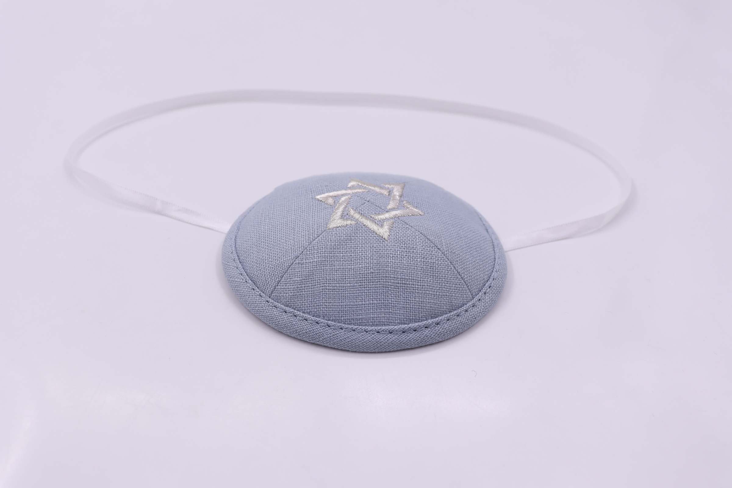 Baby Cotton Linen Kippah With Strings Kippot kipa kipah yarmulke yarmulka head covering: Special Design Teddy or Star of David in Blue or White Linen 4″ (10 cm) Dia.