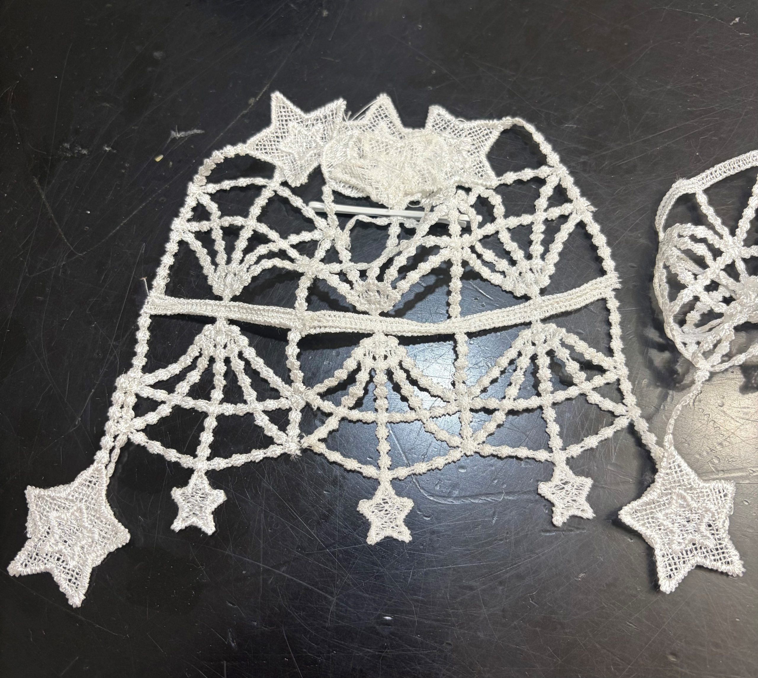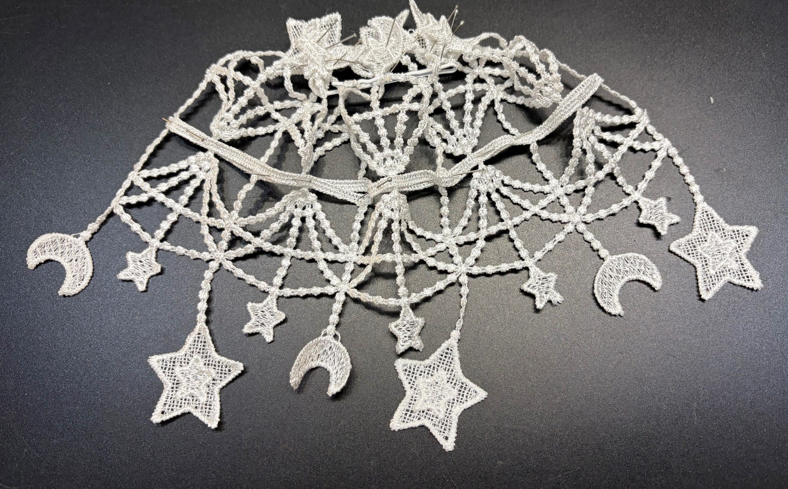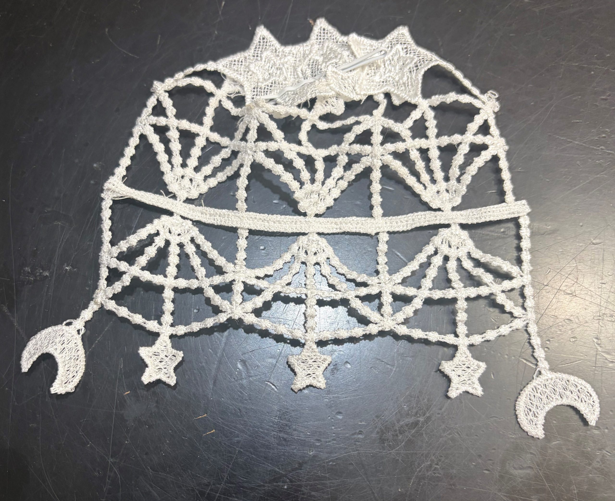 Fancy Dainty Moons & Stars Hand Crafted Synagogue Shul Temple Bridal Tea Party Costume Women’s Victorian Vintage Look Chantilly Lace Doilies Chapel Bridal Head Covering (Weddings Bar Mitzvahs) – Fancy Veil Doilies